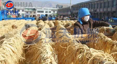 先清除地表,然后搶晴天土壤適應(yīng)時用釵角鋤從一側(cè)開挖,注意不可從根條挖破挖斷,挖起后清去泥土,符合要求的運回加工。新鮮黨參以根條較長,粗1厘米以上,無支根、尾根少、漿氣足、無損傷者為上品。