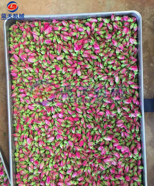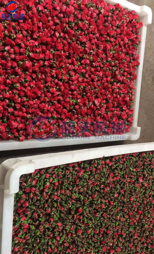 玫瑰花的商品花分為花苞和鮮花,在烘干工藝的程序上有所不同,下面我們結合實際的現場情況做一次整個工藝流程的介紹。