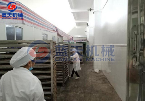 紅糖烘干工藝:將紅糖磚切成方塊狀,置入托盤中,在物料架中分層放好,注意層與層之間的距離,將物料車推入烘干房,開始啟動(dòng)溫濕控制系統(tǒng),在紅糖烘干機(jī)的使用過程中,第一個(gè)小時(shí)可以只升溫不排濕,因?yàn)樵诠ぷ鞯牡谝浑A段,烘干房里面的濕度很低。第二階段設(shè)定為烘干加排濕的工作程序模式。紅糖烘干機(jī)帶有余熱回收功能。在排濕過程中的熱量會(huì)重新參與到烘干房的熱循環(huán)。排濕過程當(dāng)中不會(huì)造成熱量浪費(fèi),從而降低了運(yùn)行成本。