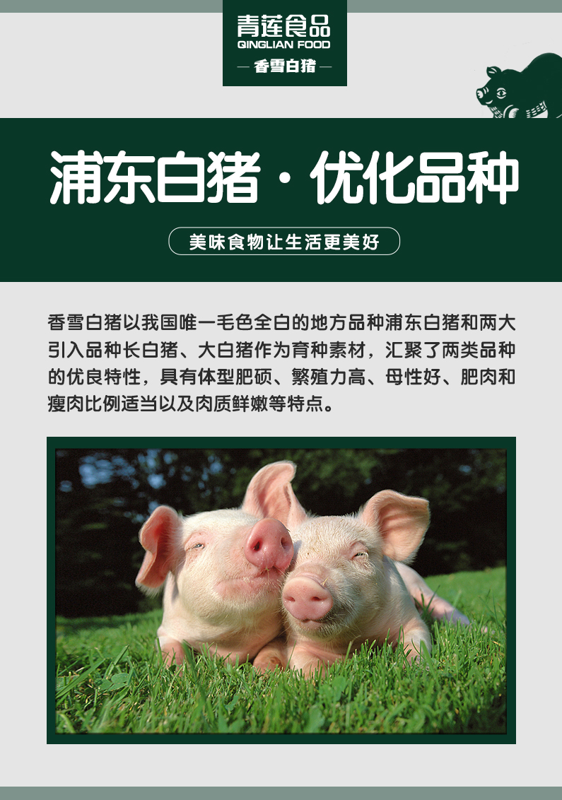 浦東白豬主產于上海浦東新區的川沙鎮和祝橋鎮,是上海本地四大特有土豬品種之一,至今已有200多年歷史,并入選國家農業部列為地方保護品種序列,2006年列入《國家畜禽遺傳資源保護名錄》,2010年摘獲國內農產品評比金獎。