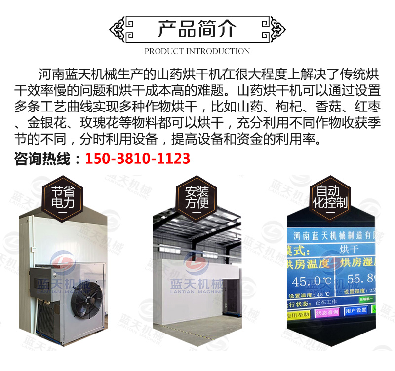 5、小型山藥烘干機空氣循環系統采用風機循環送風方式,風循環均勻效率高。風源由循環送風電機(采用無觸點開關)帶動風輪經由加熱器,而將熱風送出,再經由風道到山藥烘干機內,再將使用后的空氣吸入風道成為風源再度循環,加熱使用。確保室內溫度均勻性。