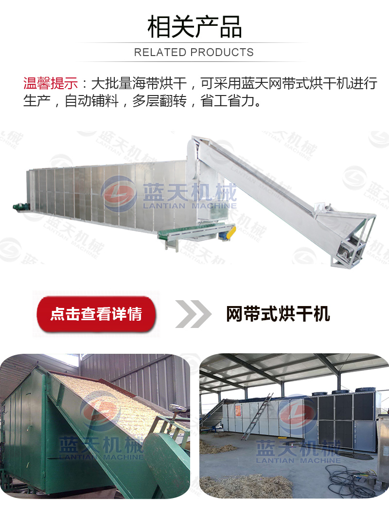 海帶需要烘干,很多人都不知道吧。海帶在打撈上來以后,是要進行加工的,先要清洗掉表面上的那些垃圾,然后進行烘干干燥,再打包進行發(fā)貨。好的海帶是烘干得好的海帶,烘干海帶好的方法就是使用海帶烘干機。