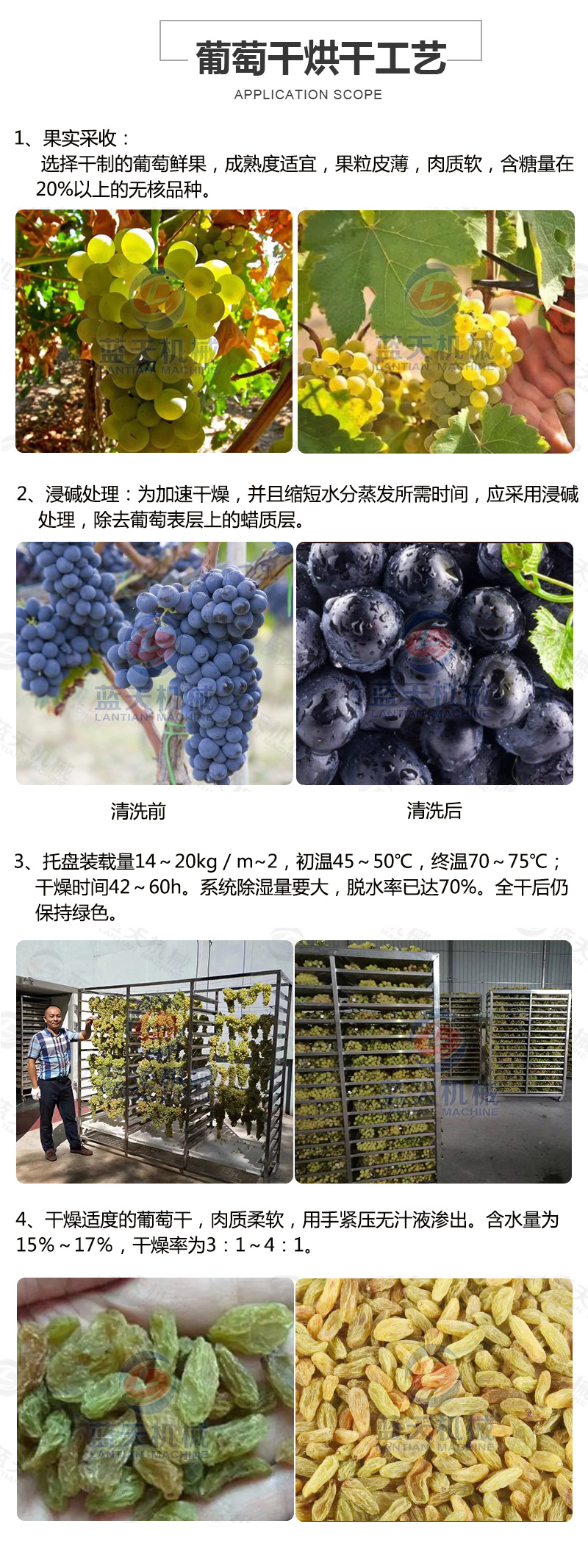 3、使用葡萄干烘干機器烘干方法 :