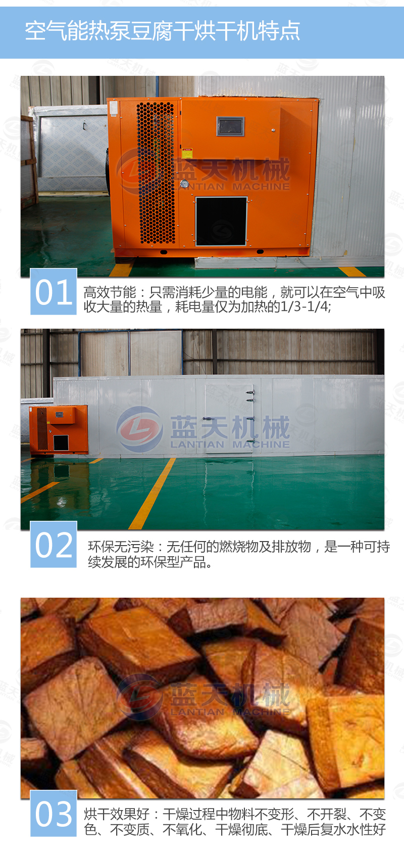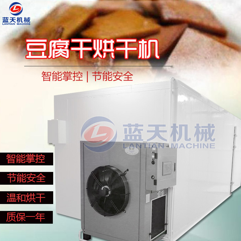 豆腐干坯要平鋪,片塊間保留適當的間隔,不能重疊,否則會造成花片或壓痕。豆腐干烘干時,豆腐干烘干設備應先中溫、再低溫,一般不用高溫。一般豆腐干烘干機宜采用的溫度為85℃左右,不超過95℃。豆腐干烘干設備溫度太低,效率低且易使產品變質;溫度太高,容易引起豆干坯內部水分迅速汽化而沖破豆干坯表面,造成不均勻甚至表面破損狀態,形成感官缺陷。如果要使烘干后豆腐干形成特別耐咀嚼的感覺,豆腐干烘干機則應采用低溫長時間的方法。豆腐干烘干時間根據豆腐干設計的軟硬度及休閑豆干坯厚薄決定。